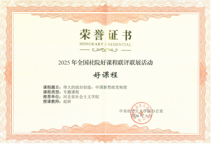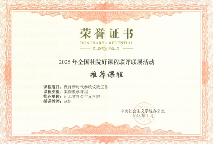 近期,中央社会主义学院组织开展全国社院好课程联评联展活动,共推选出“好课程”50门、“推荐课程”59门。我院教学部副主任赵妍同志主讲的2门课程和参与的1门课程入选其中。